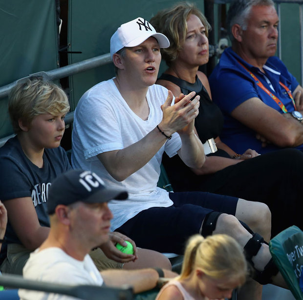 <元記事:Snapped: Man United star Bastian Schweinsteiger spotted with knee brace at Miami Open@Daily Star>